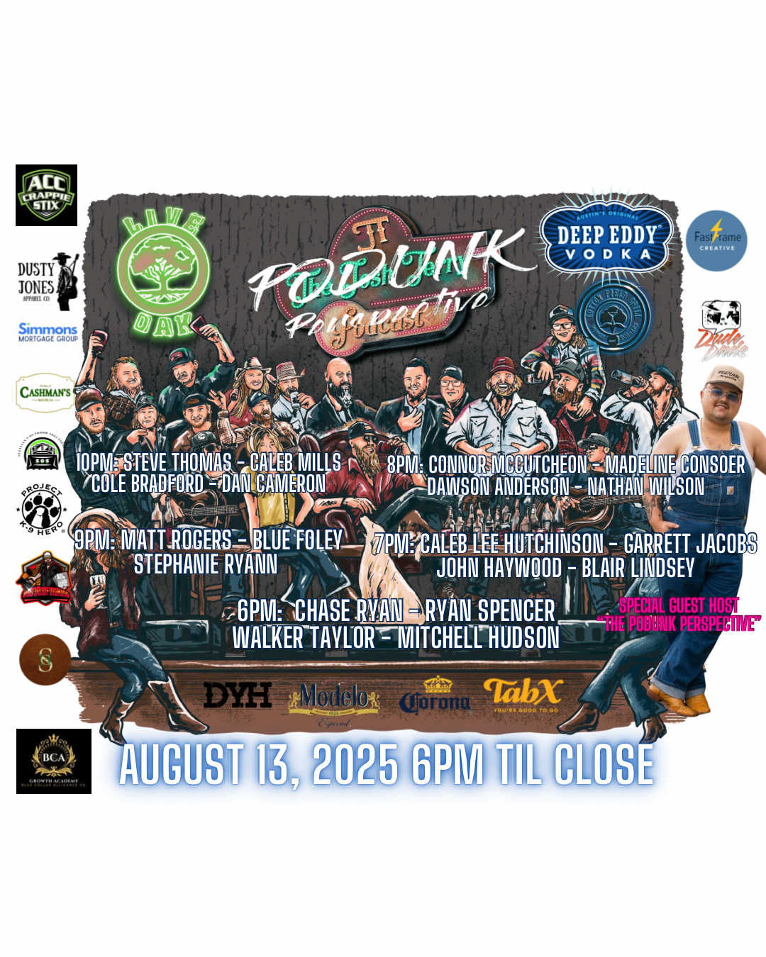 WEDNESDAY, AUGUST 13TH, PODUNK PERSPECTIVE WILL TAKE OVER THE JOSH TERRY PODCAST AT LIVE OAK IN NASHVILLE!